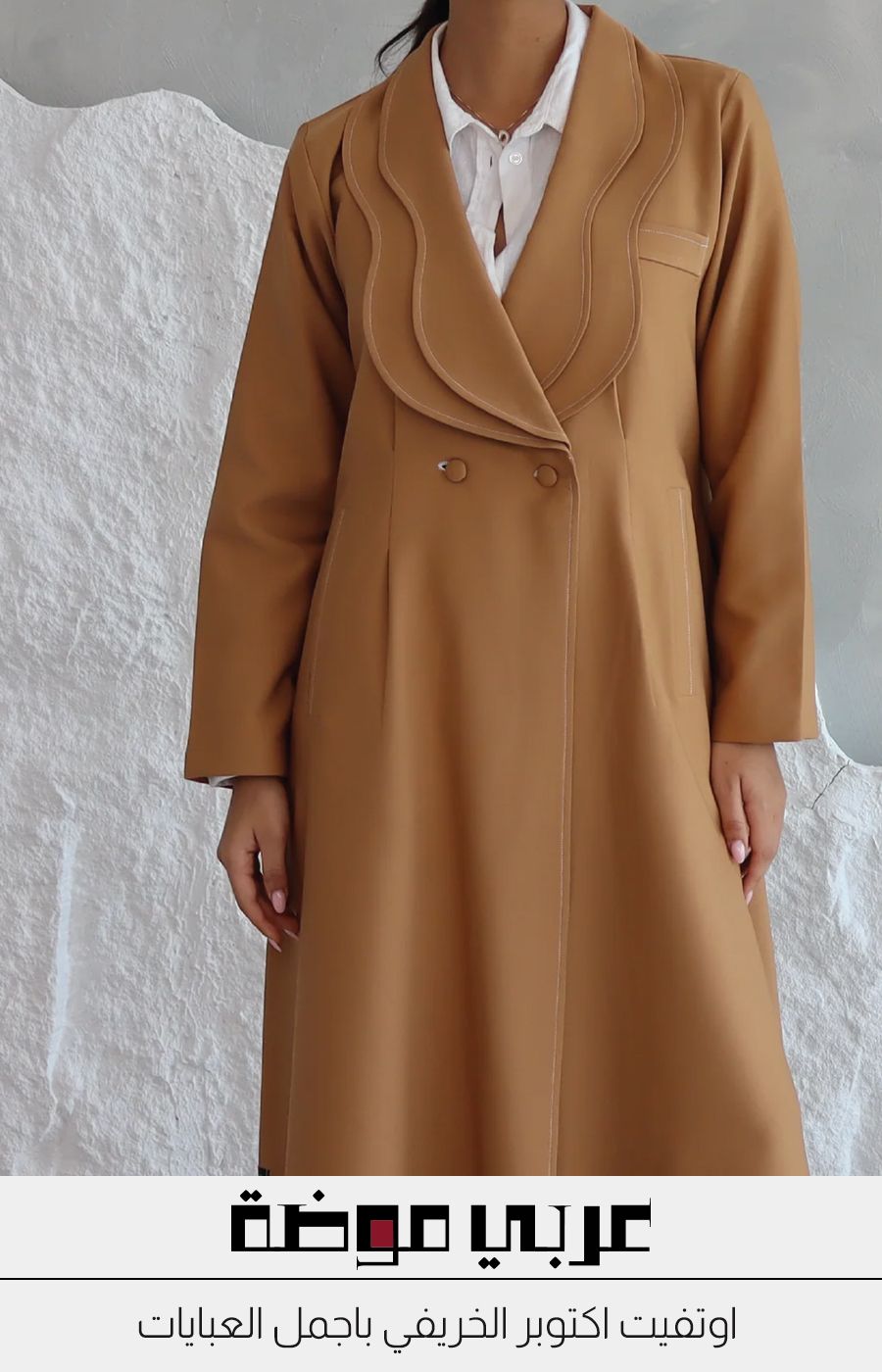 لو استطاع القاموس العربي أن يُعرّف كلمة "أناقة" بصورة او اطلالة واحدة، لكانت هذه العباية الرائعة من آبل وانغ بلونها البيج الناعم هي الأنسب، فالخطوط البسيطة المعتمدة على روح البلايزر ستنقلك الى اوتفيت خريفي رسمي مذهل، وكانها خاتم كارتييه يلين ويظهر الفخامة باي طريقة ترتديه.